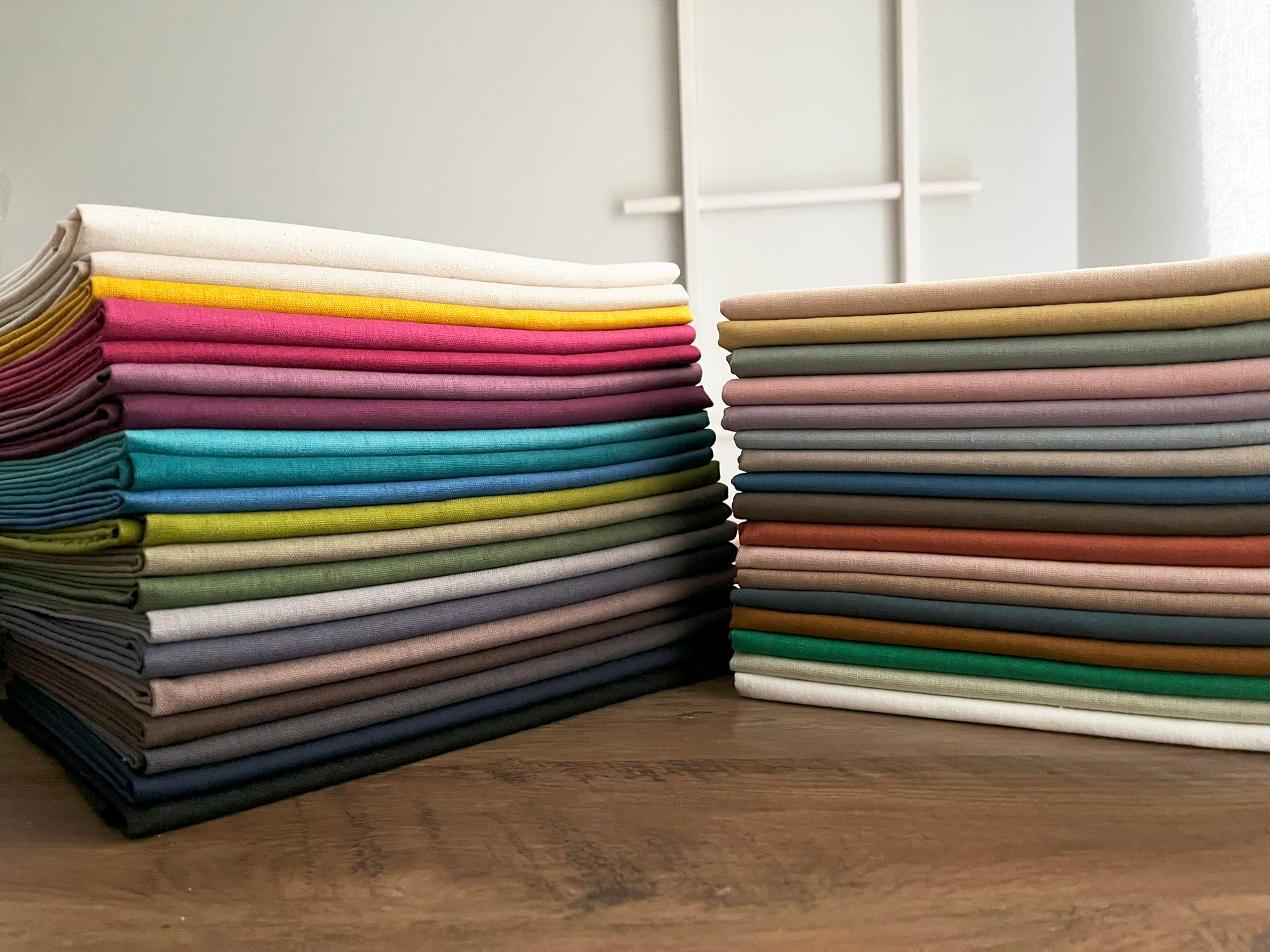 綿麻キャンバスは、落ち着いた大人の布小物に最適なニュアンスカラーを揃えました。