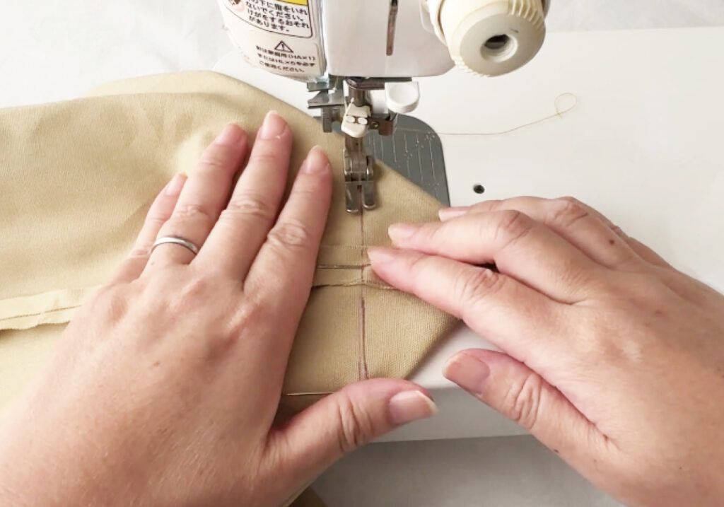 縫い代を内布側に倒し、2mm程の位置に表からステッチをかけます。