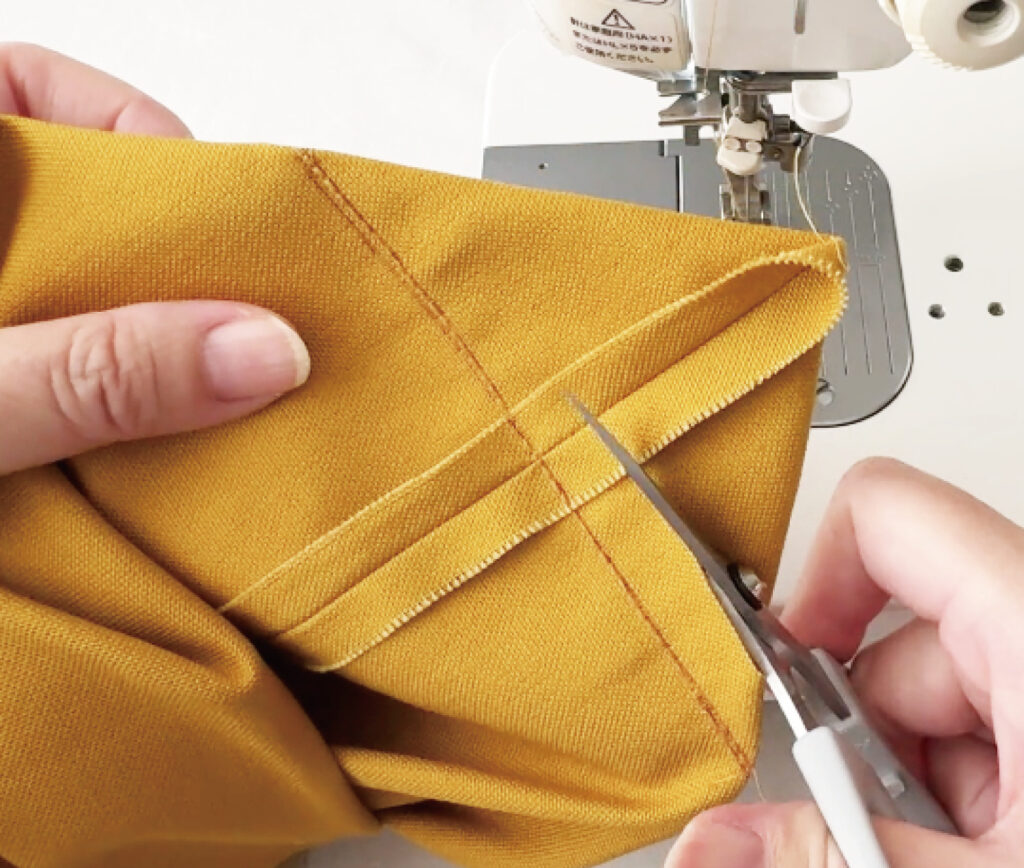 4箇所共に、1cmの縫い代を残して余分な部分をカットしておきます。